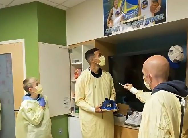 一周后,勇士客场挑战步行者,比赛前一天,库里瞒着所有人来到医院,想要给布罗迪一个惊喜。